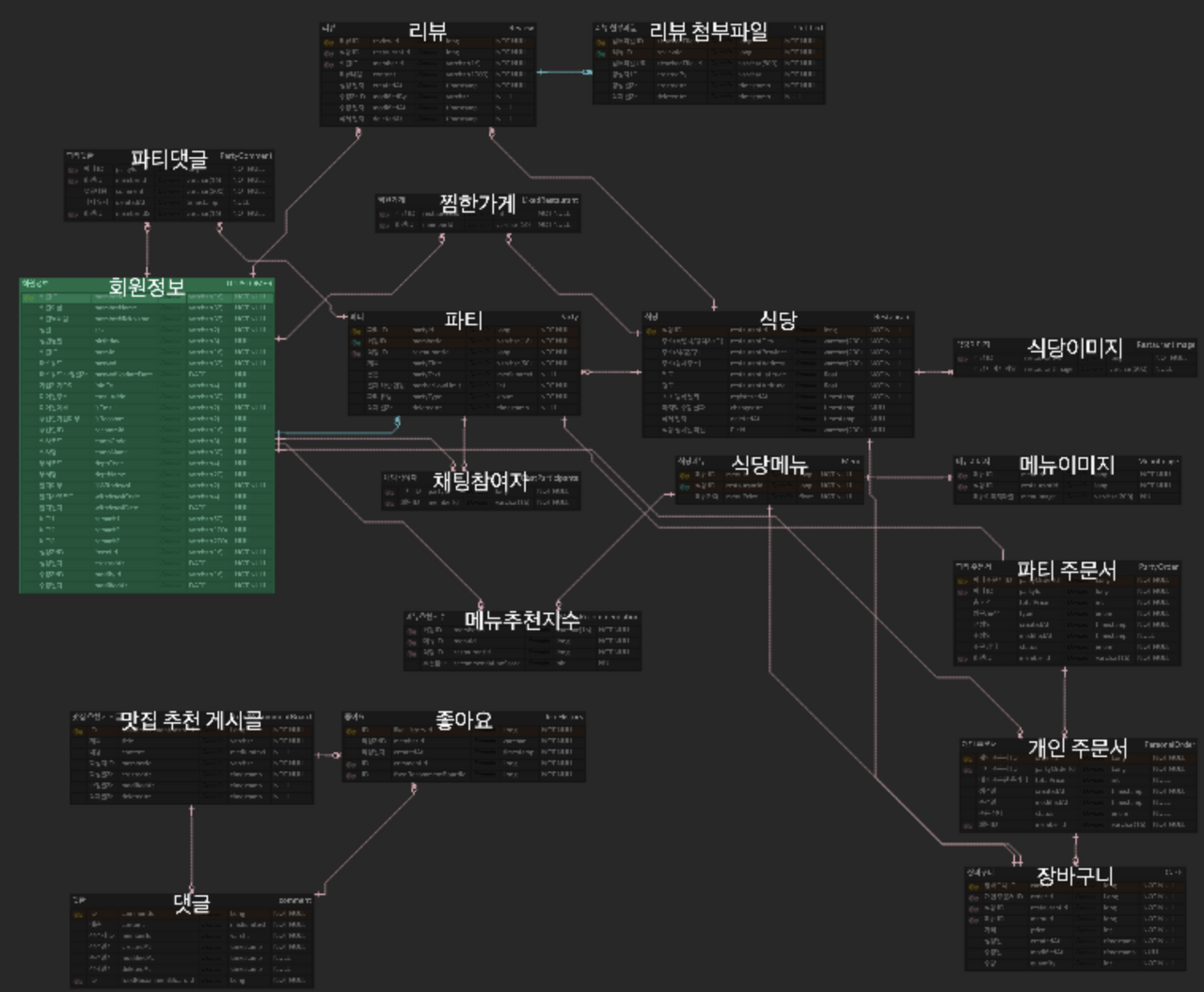 기능명세서를 작성하고 어떤 데이터들을 저장해야하며 데이터간의 관계를 어떻게 연결할 것인지 고민하고 이를 기반으로 ERD를 생성했습니다.