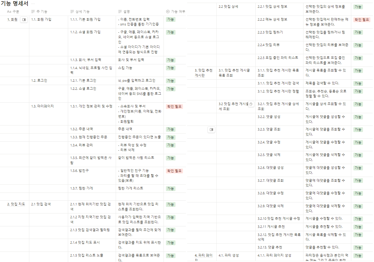 기능명세서는 Notion을 사용해서 문서화 했습니다.