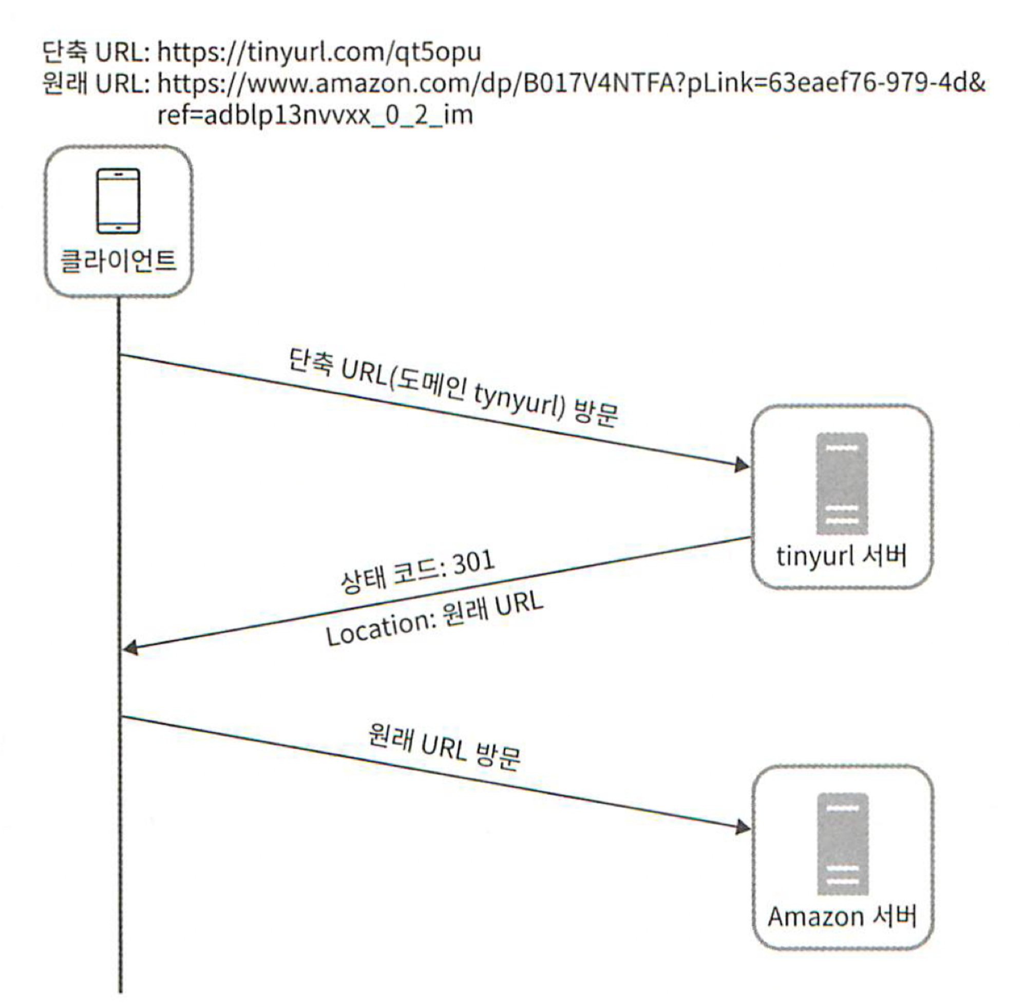 따라서 클라이언트의 요청은 언제나 단축 URL 서버에 먼저 보내진 후에 원래 URL로 리다이렉션 되어야 한다.