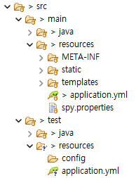 STS에서 테스트 코드 작성 중 테스트 실행환경을 분리하기 위해 test/resources 경로에 application.yml 파일을 생성하였다.