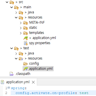 (spring.config.activate.on-profile의 값을 test가 아닌 다른 값으로 설정해도 상관없다.)