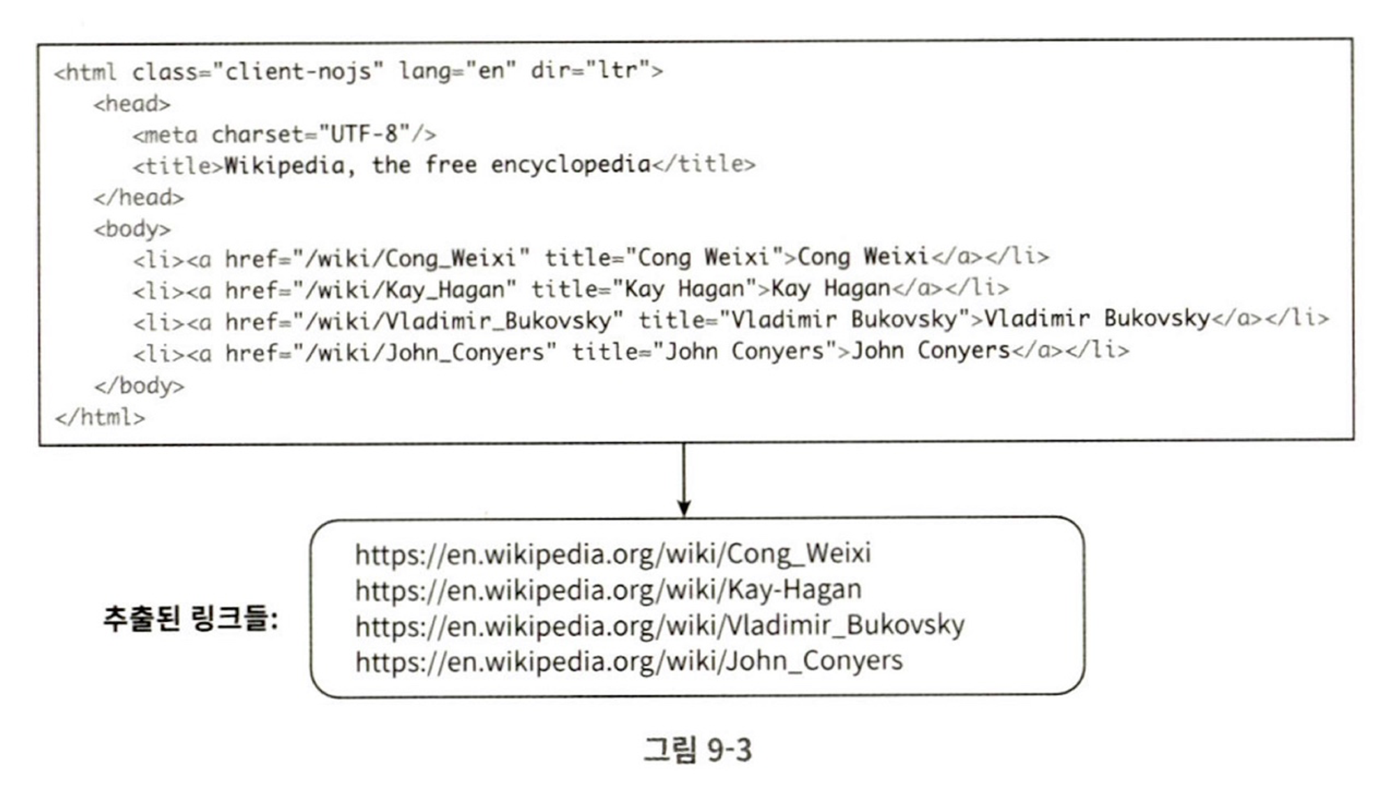 - URL 추출기는 해당 HTMl 페이지에서 링크를 골라낸다.