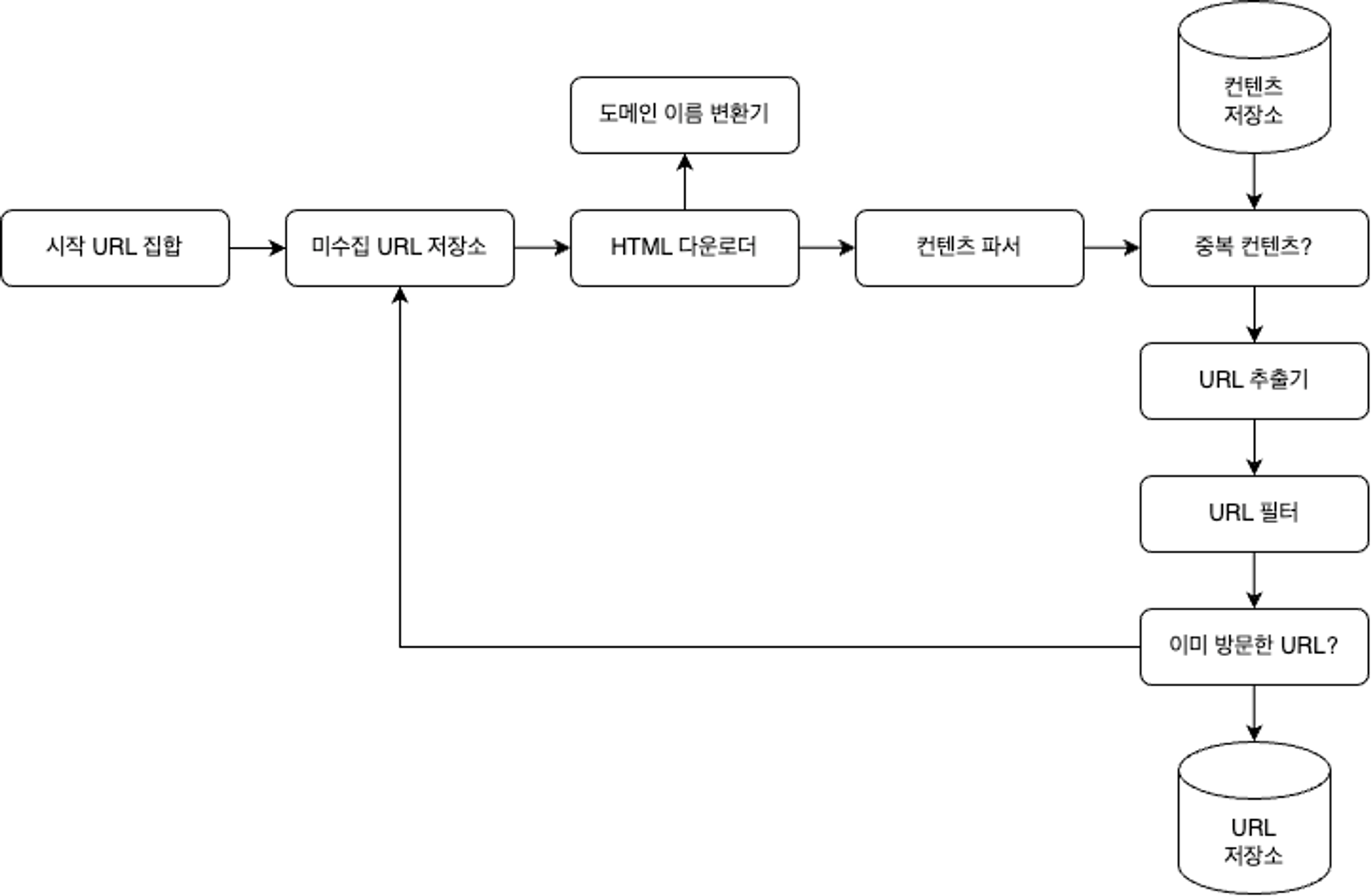 - 저장소에 없는 URL은 URL 저장소에 저장할 뿐 아니라 미수집 URL 저장소에도 전달한다.