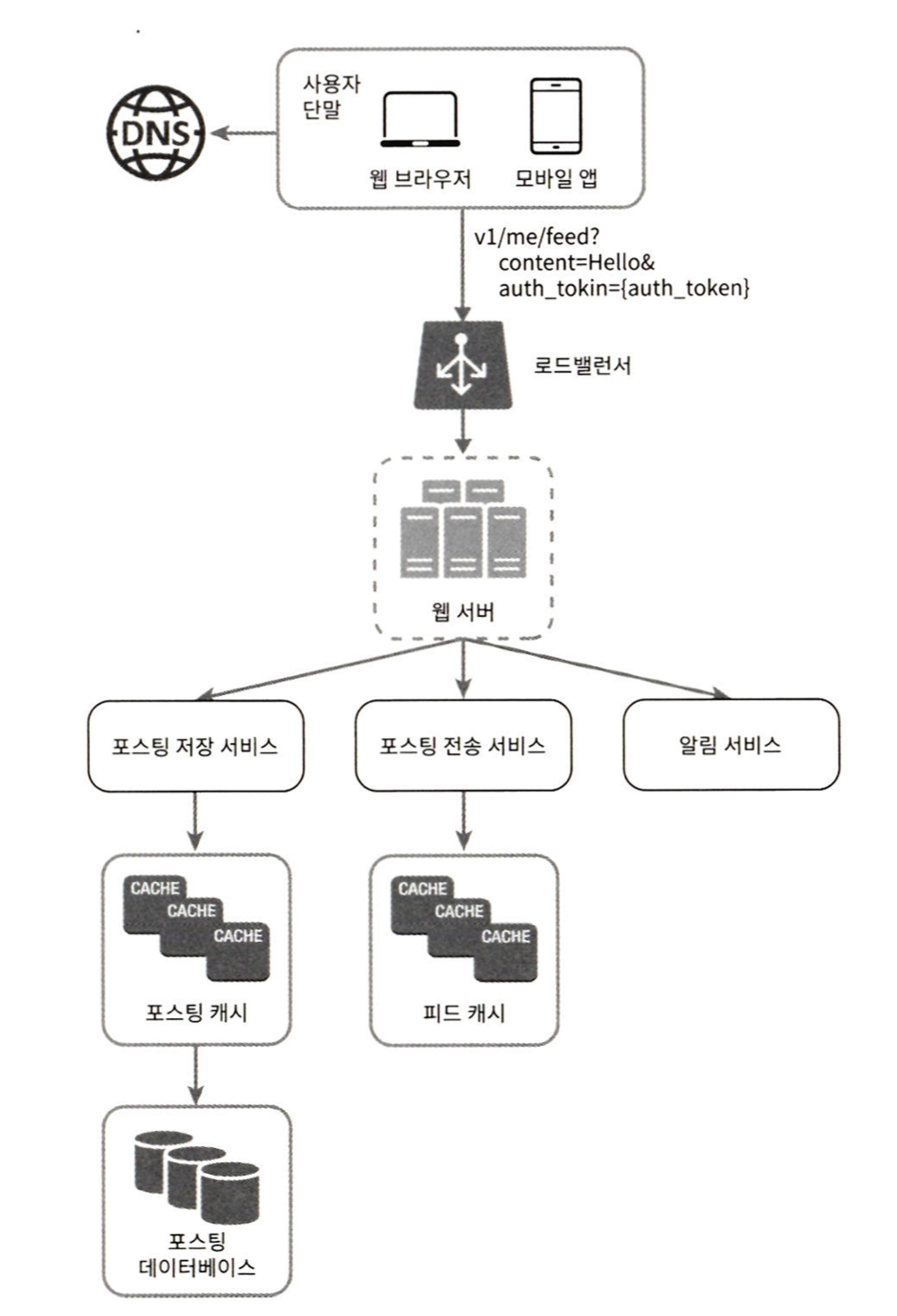 - 웹 서버 : 트래픽을 뉴스 피드 서비스로 보낸다.