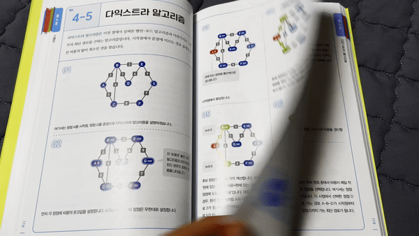복잡한 다익스트라 알고리즘도 단계별로 설명하고 있어서 쉽게 이해할 수 있었습니다.