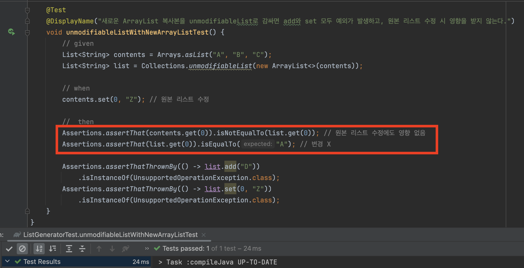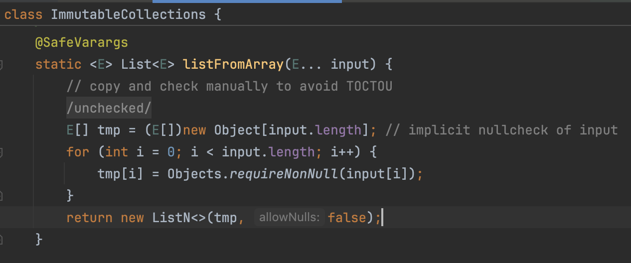 🎉 new ArrayList<>(Arrays.asList(...))는 args 배열을 복사하여 새로운 리스트를 만들고, Collections.unmodifiableList로 래핑하므로 써, 참조에 인한 변경, 리스트 직접 변경을 완벽히 방지하여 불변 리스트로 만들 수 있습니다.