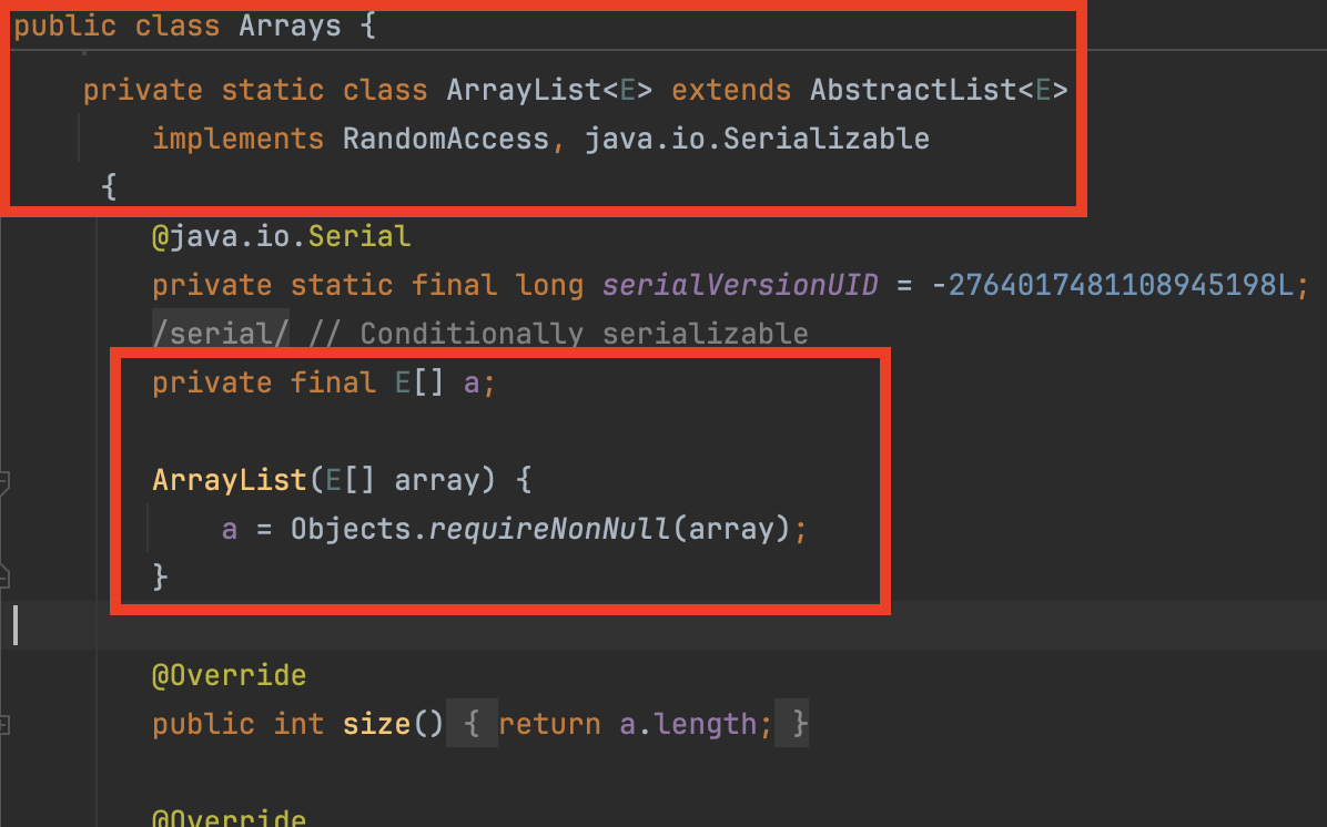 이때 반환되는 리스트는 java.util.ArrayList가 아닌, Arrays 클래스의 내부 클래스인 ArrayList입니다.