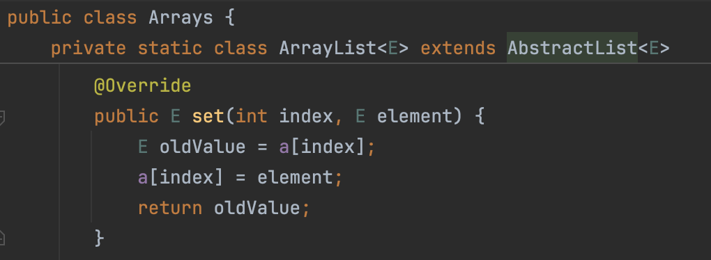 set() 메서드는 ArrayList 내부에 정의되어 있고, add()와 remove() 등의 메서드는 AbstractList에 정의되어 있는데요.