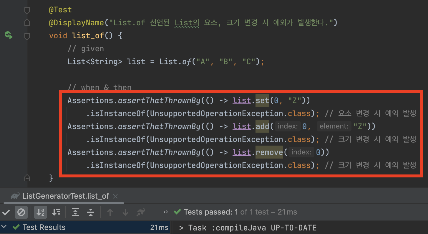 List.of()의 동작