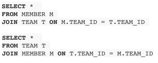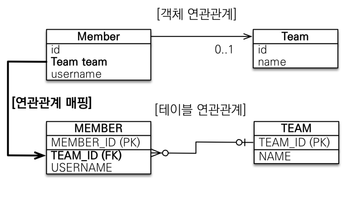 데이터베이스에서는 외래키만 설정해 준다면 MEMBER 테이블과 TEAM 테이블에서 양쪽으로 join 하여 양방향으로 조회가 가능하다.