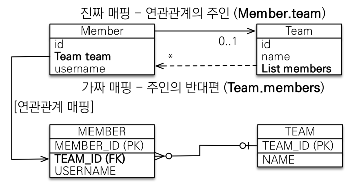 - 여기서는 Member.team이 연관관계주인