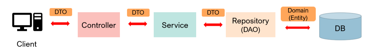 계층 사이에서 데이터를 전달하기 위해 DTO에 데이터를 담아 서로 주고 받는다.