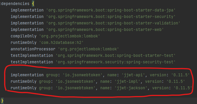 - signup 메서드는 회원가입 로직을 수행하는 메서드이다. username이 DB에 존재하지 않으면 Authority와 User 정보를 생성해서 UserRepository의 save메서드를 통해 DB에 정보를 저장한다.